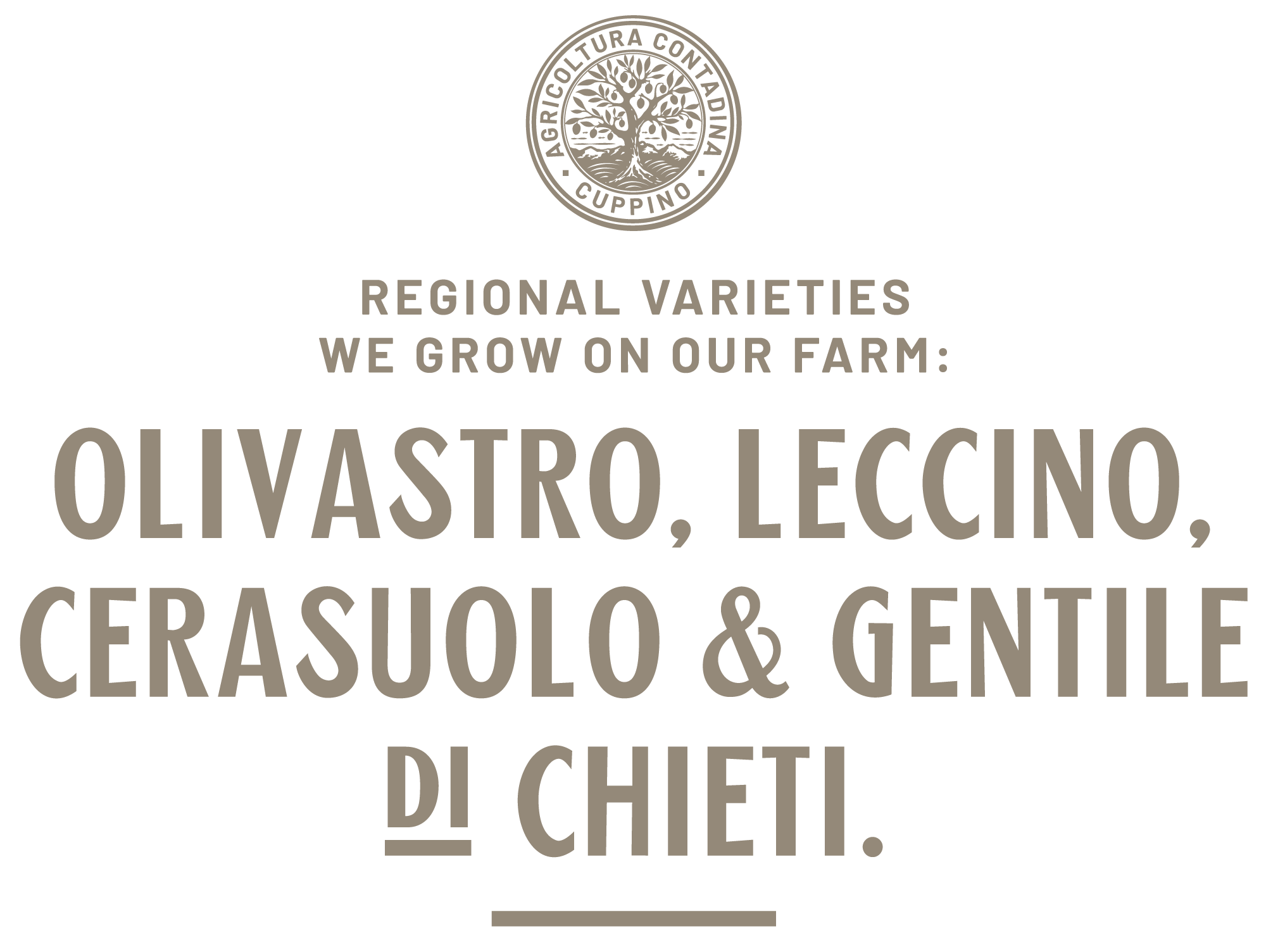 Our grove showcases four distinguished Italian olive varieties: the prevalent Olivastro, the classic Leccino and Cerasuolo, and last but not least the local Gentile di Chieti.